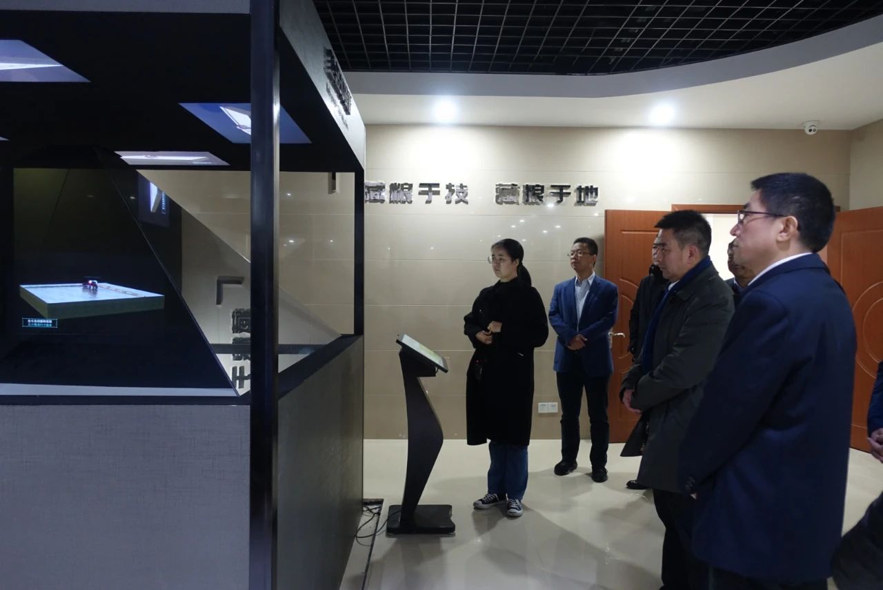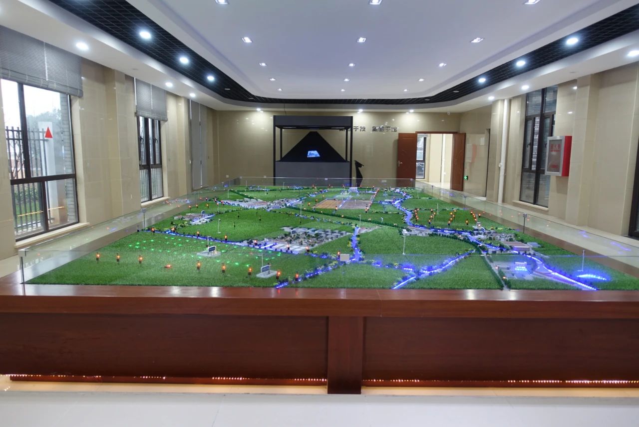 劉小虎院長一行參觀了大田示范項目的全息3D立體投影和沙盤演示,直觀了解項目的整體布局和規劃發展。在調度指揮中心觀看了托普云農工程師對指揮系統的現場演示,并登上觀景平臺實地查看農田情況,聽取了寧波市海曙區副區長毛孟軍關于項目產出效果的匯報。