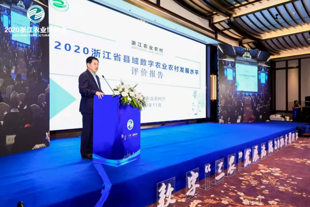 論壇上,浙江省農業農村廳黨組成員、副廳長唐冬壽發布了《浙江省縣域數字農業農村發展水平評價報告》,唐冬壽副廳長表示,浙江省縣域數字農業農村總體發展水平達68.8%,遠高于全國總體水平(36.0%)32.8個百分點。報告還公布了浙江省縣域數字數字農業農村發展水平20強,德清縣領跑全省,桐鄉、浦江、安吉等市縣榜上有名。