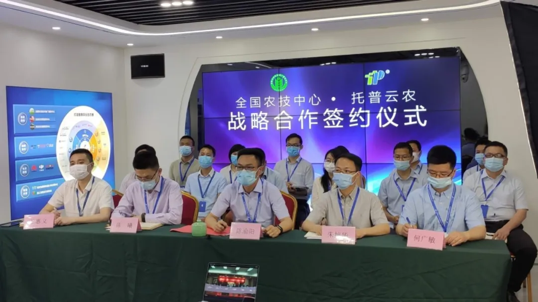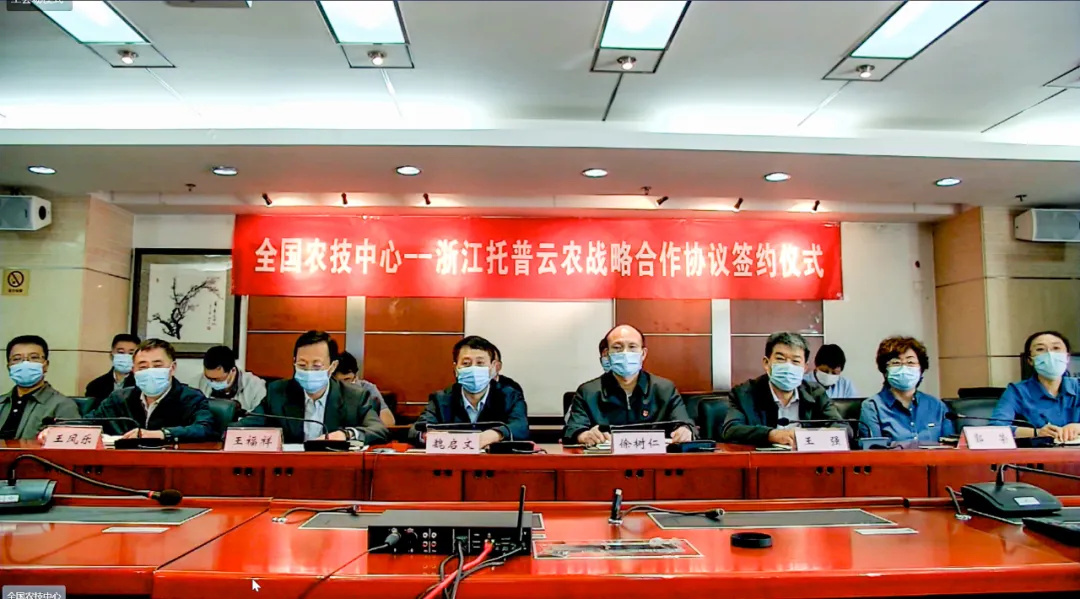 為積極響應實施國家大數據戰略、鄉村振興戰略,在農業農村現代化建設中做出更大貢獻。5月18日,全國農業技術推廣服務中心與浙江托普云農科技股份有限公司舉行全面戰略合作“云簽約”儀式。全國農技中心主任魏啟文、黨委副書記徐樹仁,副主任王福祥以及各體系線分管領導,托普云農董事長陳渝陽、副總經理朱旭華、陳曦以及各業務線主要負責人參加會議。