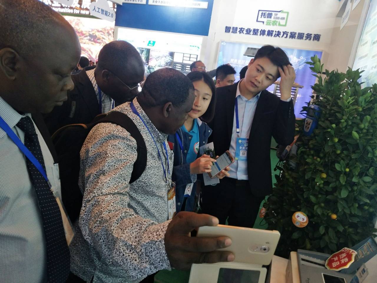 農業信息化是農業現代化的標志。在海南,瓜果種類資源豐富多樣。為提升現場參展人員的農產品質量安全溯源體驗,托普云農還將橘子樹搬進展區。分布在展區的兩棵橘子樹,獲得國際友人的好奇與關注。