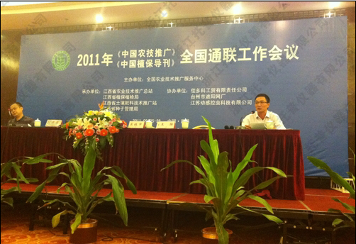 全國農技中心副主任栗鐵申、全國農技中心處長孫新友、江西省農業廳廳長張忠平等領導參加了此次會議。前來參會的有全國農技推廣中心有關領導、各省(市、區、州)植保部門和農技推廣部門有關領導和省級特約通訊員、特邀全國部分市縣農業部門的先進典型以及“雙刊”全體編審人員,共有140余人參會。我公司作為《中國農技推廣》副理事長單位、會議協辦單位應邀參加,并由總經理陳渝陽代表公司做了主題發言。