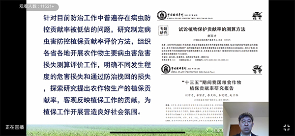 劉萬才處長表示,2021年,全國農作物重大病蟲害總體偏重發生,2022年,病蟲防治工作將緊緊圍繞“保供固安全、振興暢循環”的工作定位,聚焦“蟲口奪糧”和綠色防控兩大任務,以組織實施糧食作物病蟲害防控“兩增兩減”行動(即增加統防統治面積、增加綠色防控比例,減少產量損失、減少農藥施用)為抓手,共同推動農業綠色高質量發展。