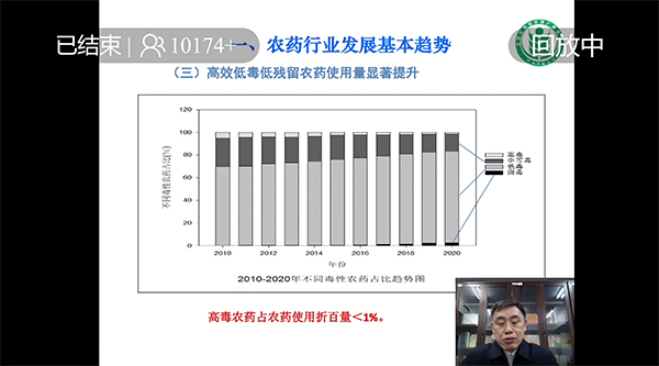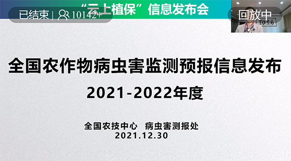 與會同期,曾娟處長線上發布《2021-2022年度全國農作物病蟲害監測預報信息》,王鳳樂首席專家線上分享《2022農藥市場需求預測與展望》,提出了“高效植保機械依然搶手”的觀點。