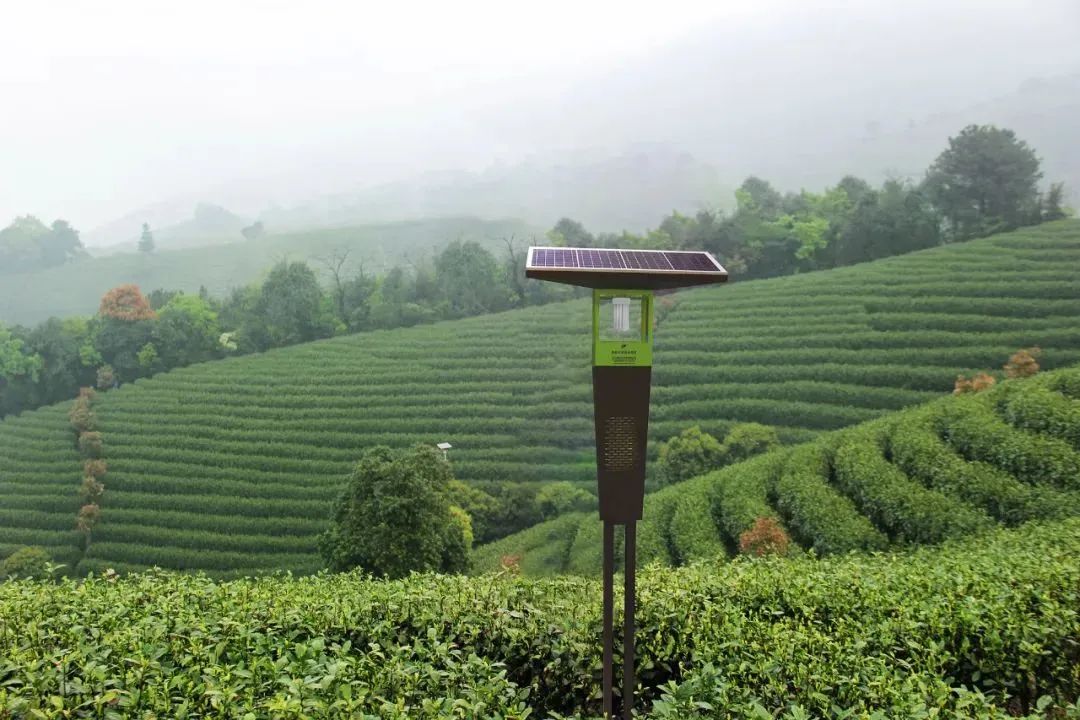 該項目中,托普云農與中國工程院院士陳宗懋聯合推出的風吸式茶園殺蟲燈在全國得到廣泛應用。該燈通過特制的LED誘蟲光源,針對茶園主要害蟲精準防控,大大減少了茶園化學農藥的施用次數和施用量,保障茶葉品質及生態環境安全,實現綠色高質量發展。