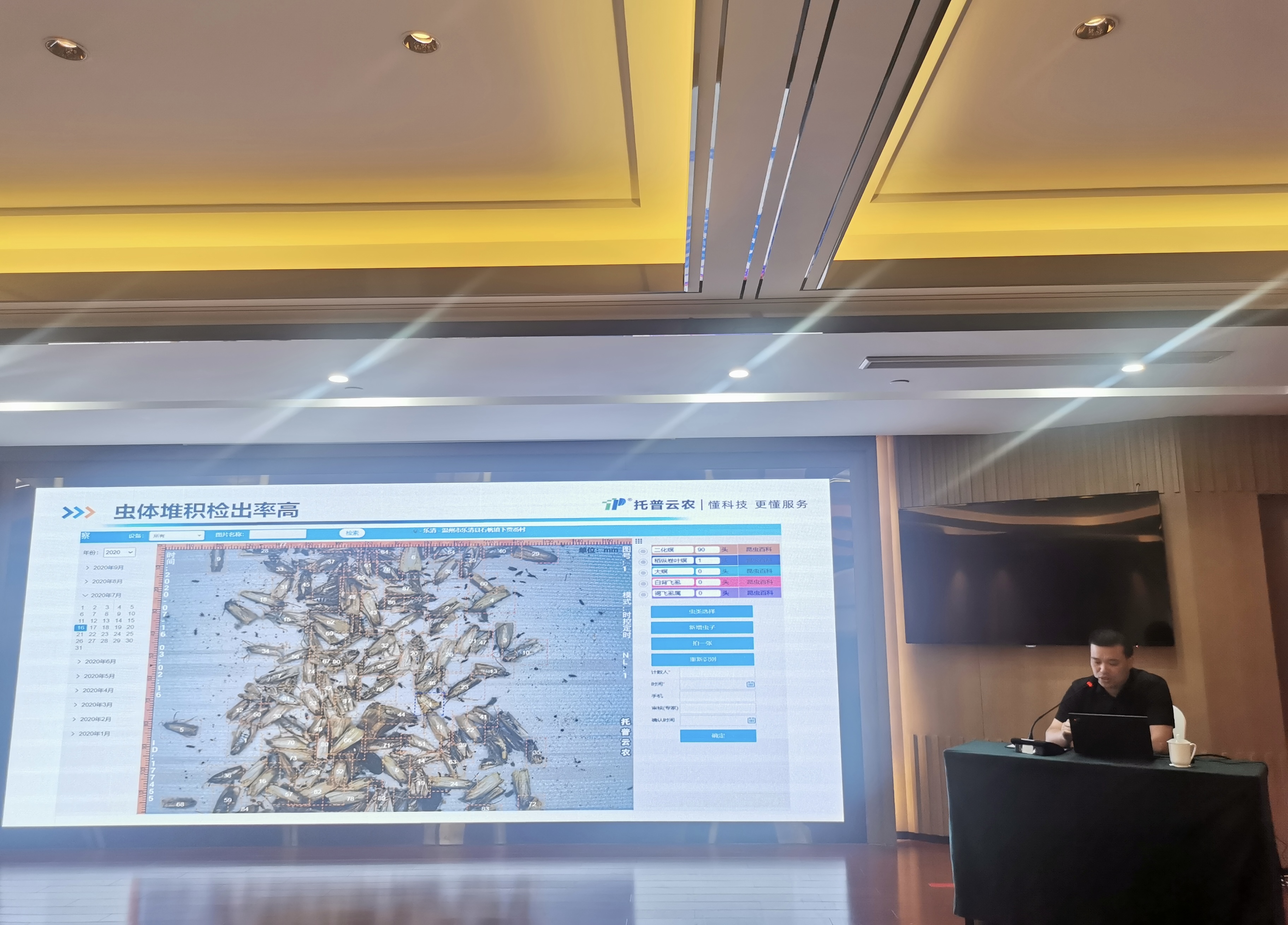 培訓班上,全國農業技術推廣服務中心首席專家王強、全國農業技術推廣服務中心測報處副處長劉杰作了專題報告。培訓班還就病蟲害測報產品應用、綠色防控及物理防控產品應用及前景、如何應用科技論文為新產品新技術做好推廣等專題進行了研討。浙江托普云農科技股份有限公司(以下簡稱“托普云農”)作為企業代表應邀參會并作專題匯報。