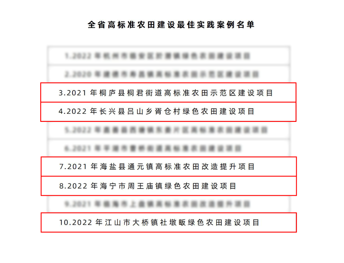 近日,浙江省農業農村廳公布“浙江省高標準農田建設最佳實踐案例名單”,全省共10個最佳實踐案例。其中,由托普云農及其全資子公司——浙江森特作技術支撐建設的桐廬縣桐君街道、長興縣呂山鄉胥倉村、海鹽縣通元鎮、海寧市周王廟鎮、江山市大橋鎮社墩畈等高標準農田(綠色農田)建設項目成功入選,全省10例獨占5席,數字農田建設能力再被認可。