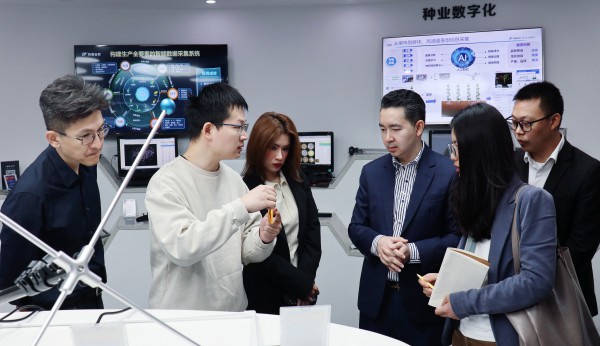代表團一行參觀了托普云農“數字三農”展廳,詳細了解了托普云農將人工智能、大數據、物聯網等“數智”技術應用于農業科研、生產以及管理決策等的豐富實踐成果與經驗,雙方圍繞水稻數智化種植生產、水稻產業鏈大數據應用等話題進行熱切交流。